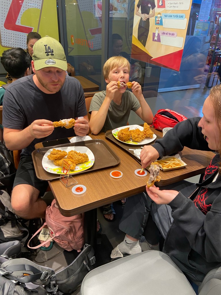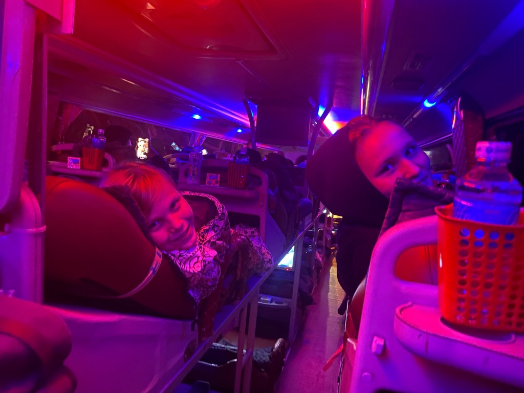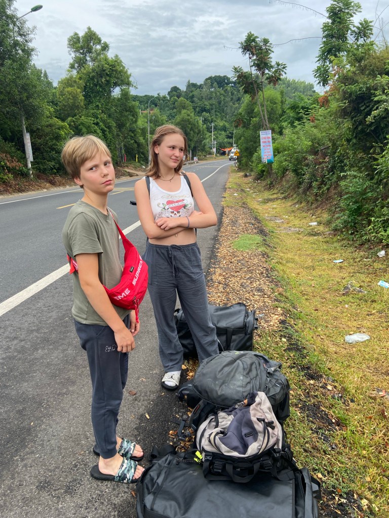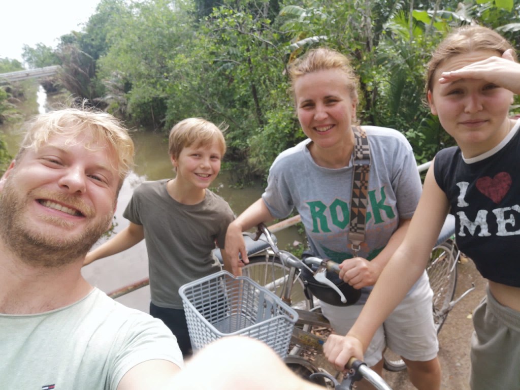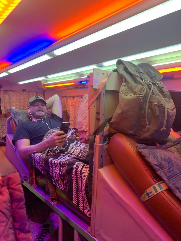 Erst mit dem Taxi in die Stadt und dann drei Stunden mit dem Bus nach Ho Chi Min City. Dort angekommen mussten wir dann erstmal ein Taxi finden was uns quer durch die Stadt zu einem anderen Busbahnhof gebracht hat. Dann schnell was essen und nach weiteren elf Stunden wurden wir am Straßenrand um sechs Uhr morgens abgesetzt.